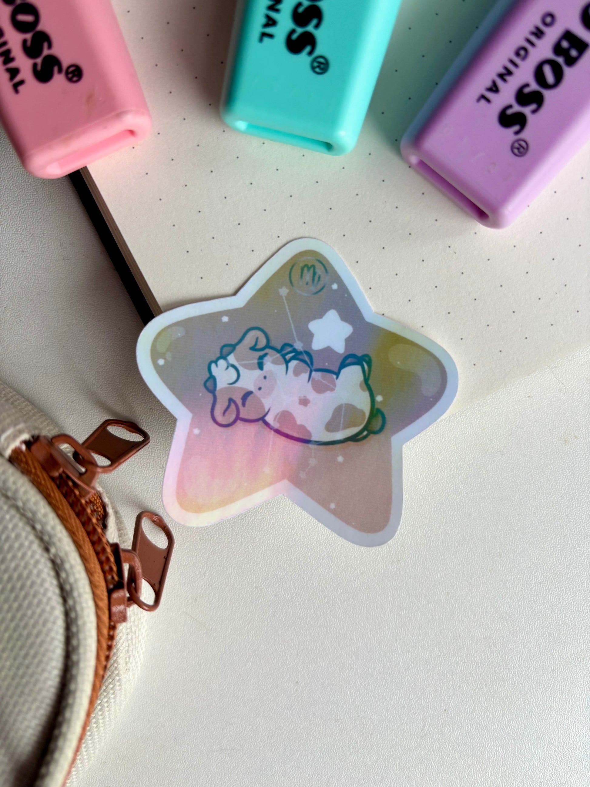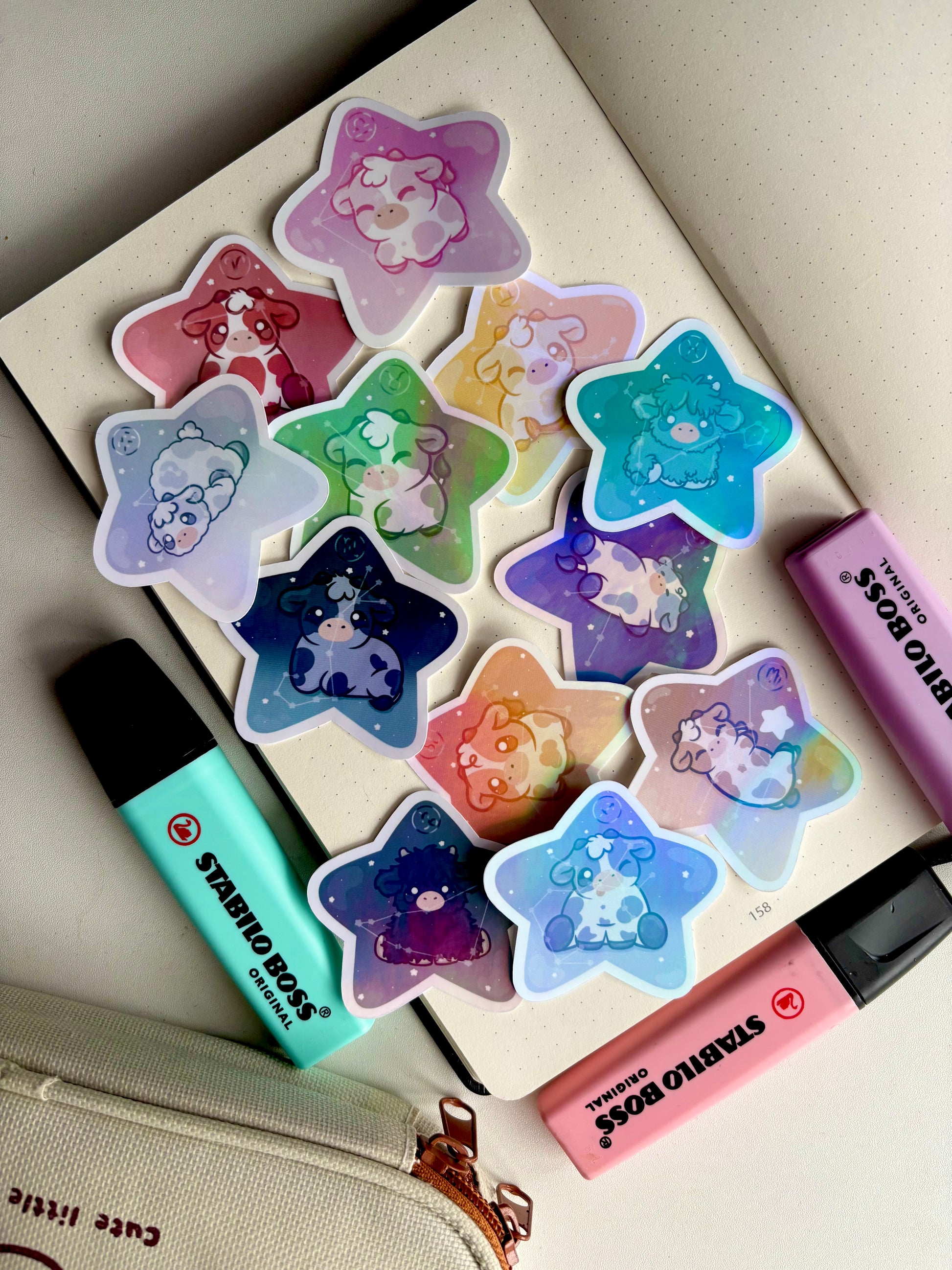 A die cut sticker pack of 12 with an extra holographic laminated layer to protect the image of the sticker and keeps it from getting water damage.