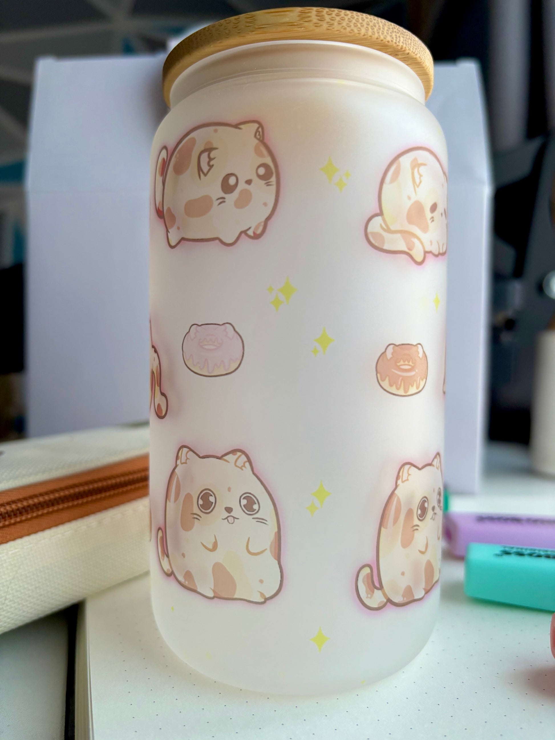 16oz (500ml) Cute Glass! Including Glass Straw!